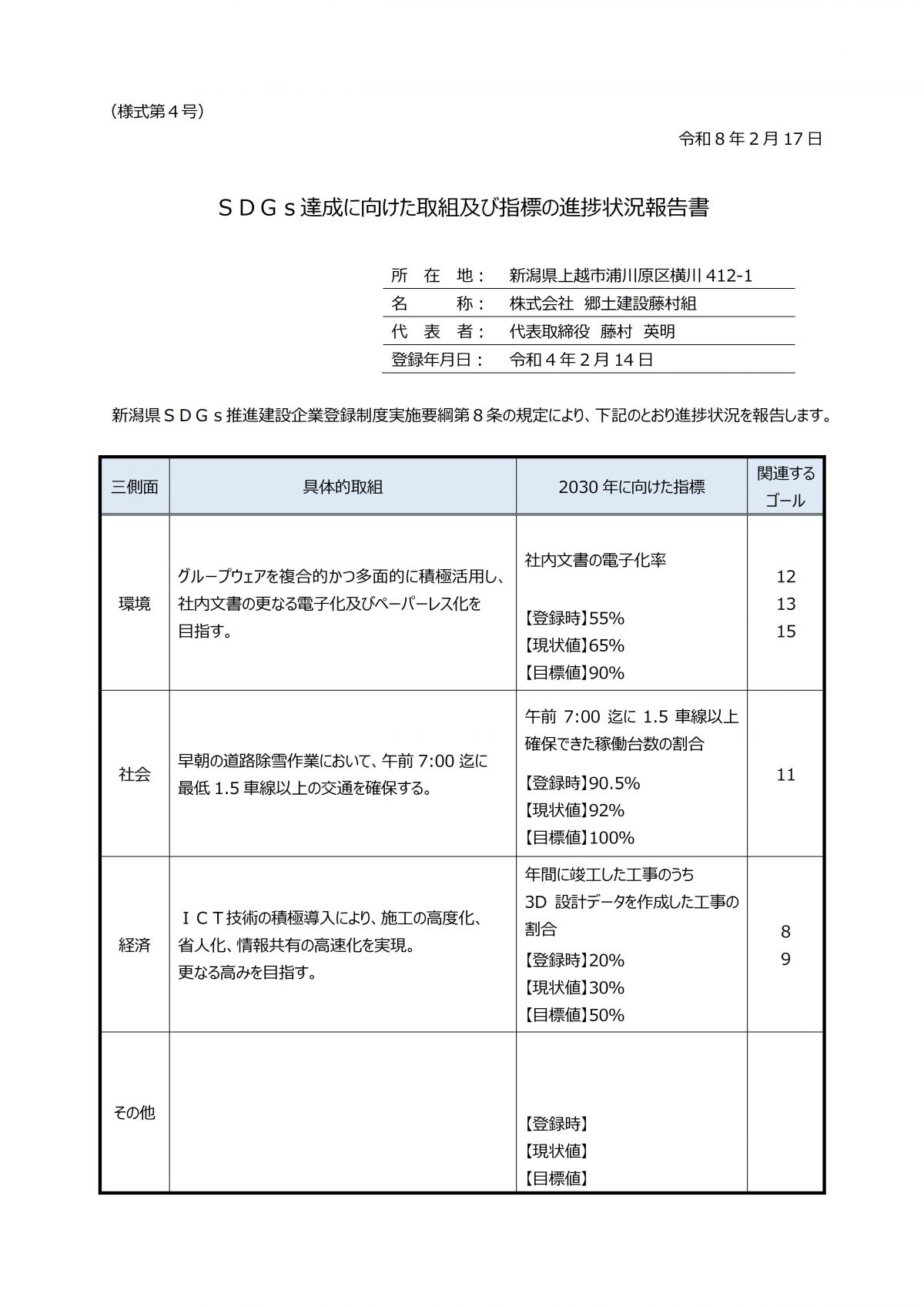新潟県SDGs推進建設企業登録制度 進捗報告