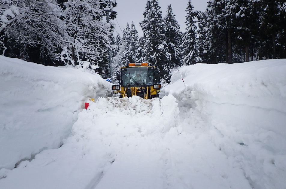 11日の早朝除雪完了後、再び道路管理者からの要請により同日午後より、弊社2班体制により、除雪作業中区間の国道を通行止とする方法により、国道253号の交通確保をおこなった。